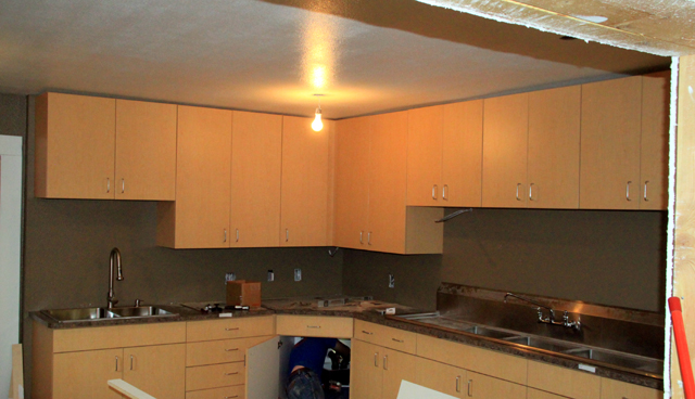 new kitchen in the Cottonwood Community Hall basement. The top photo shows