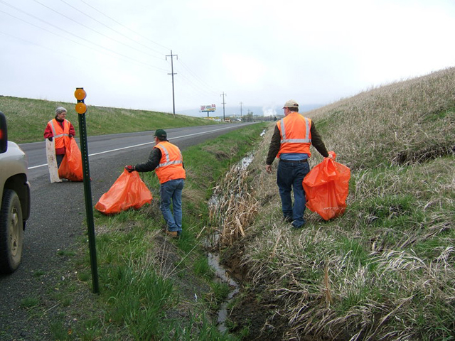Idaho County Democrats during a previous cleanup of their adopted section of Highway 95 near Grangeville. They will hold another cleanup this Sunday. Photo by Bill Farmer. |