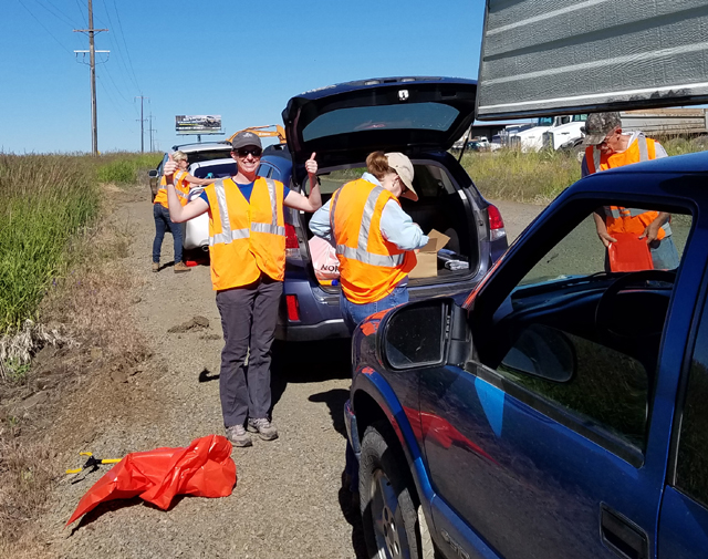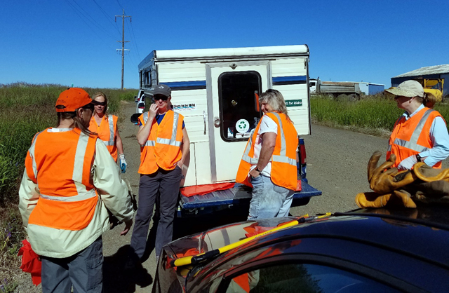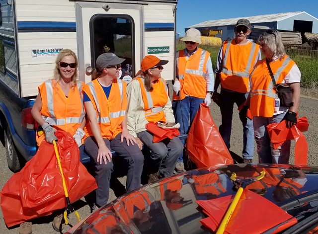 Michele Waite, Stephanie Berry, Jennifer Artley, Mike Perdue, all of Grangeville, preparing to clean Highway 95.