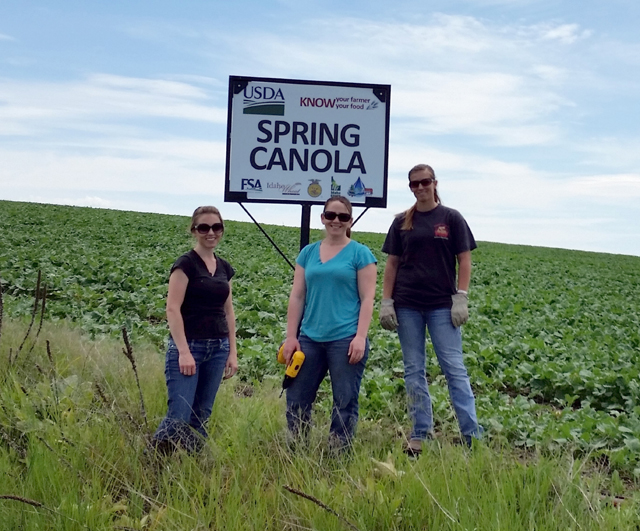 Erica Baldus, Tiffany Jacobs and Leslie Workman (Program Technicians for Idaho County FSA) after putting up a Spring Canola sign. Photo provided by Julie Fowler. |