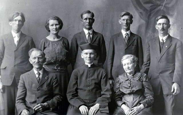 above left. Back from left are Alphonse, Mary, Ray, Herman and Joe. Front