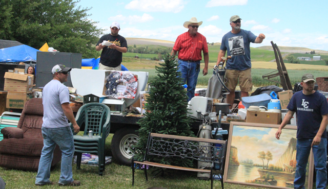 John Schumacher, center, served as auctioneer with Ben Schumacher, Conrad Arnzen, Don Schumacher and Austin Sonnen helping .