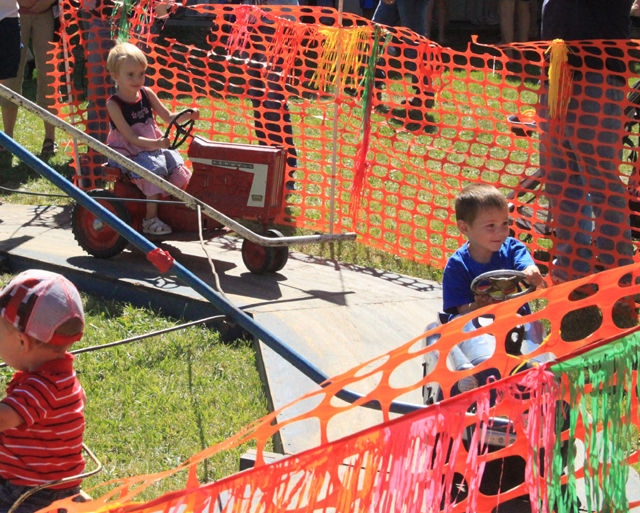 When taking the merry-go-round photo above we noticed this youngster wearing an IH hat but riding on a John Deere tractor.