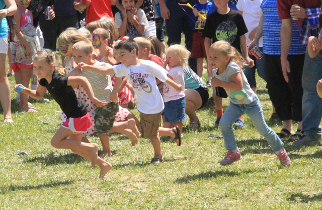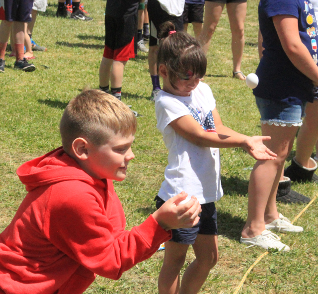 Joe Kuther wound up with egg all over his hands as the egg tossed by his granddaughter Madison Shears broke.
