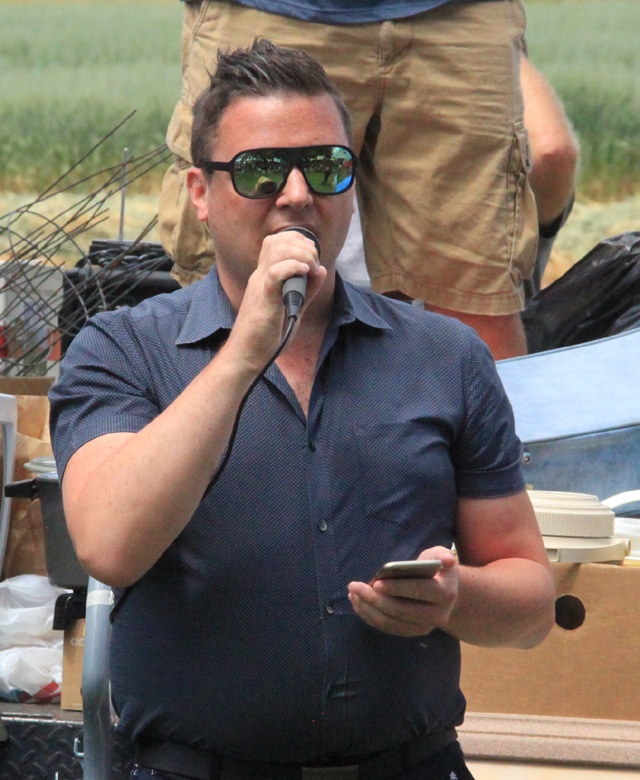 Jason Stubbers led the crowd in "God Bless America" prior to the Quilts of Valor presentations. |