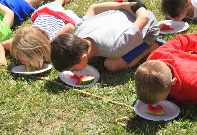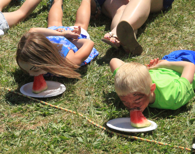 A couple of photos from the watermelon eating contest. No hands allowed.