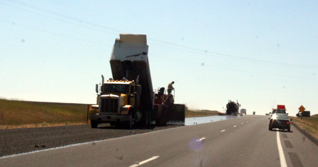 Highway 95 was getting sealcoated from Lawyer’s Canyon