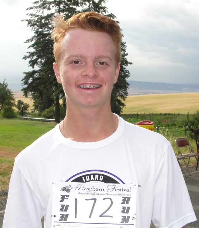 Dylan Mader was the overall first place finisher in the 5K portion of the Raspberry Festival Fun Run. He is the 15 year old son of Greg and Rhonda Mader of Lewiston and is the grandson of Ingrid Mader and Vern and Lynn Sonnen of Cottonwood. Emma Strommen, age 10 of Meridian, was just 14 seconds behind Mader and was the first female finisher in the 5K run. She was featured in the Chronicle prior to last year's Raspberry Festival.