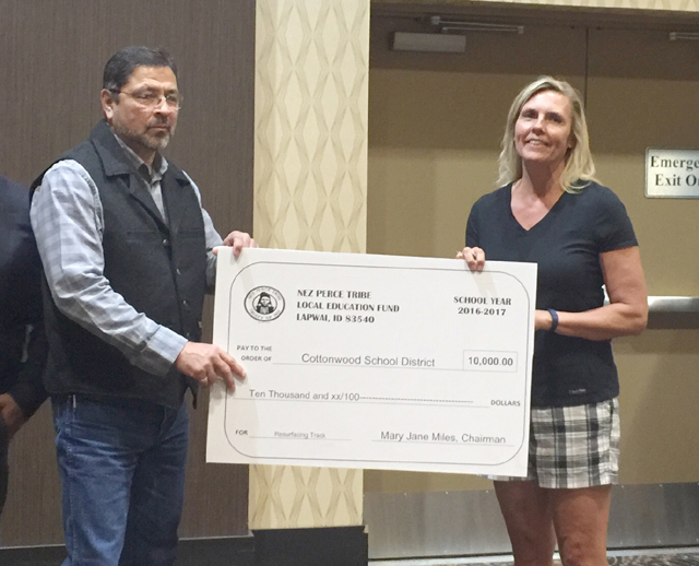 School District accepts a $10,000 ?check from the ?Nezperce Tribe . This