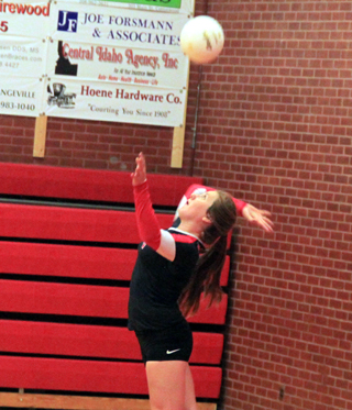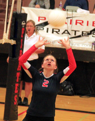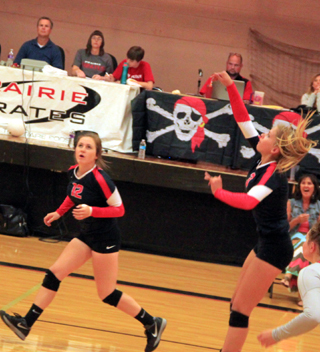 In the opening game against Kellogg Prairie played it close early on but a couple of short service runs had Kellogg up 14-21. Prairie was able to get back within 2 at 20-22 as Mykaela McWilliams served 3 aces and scored on a stuff block and a kill while Uptmor added a kill. Their rally was killed on a double hit violation and Kellogg was able to win the final 2 points of the game. The second game was back and forth deep into the game as it was tied at 17-17 when Prairie finally began to pull away. Angela Wemhoff scored on a dig to make it 18-17 then served 4 straight points with an ace and 3 kills by Uptmor, to take a 22-17 lead. They allowed Kellogg just 1 service point the rest of the game as they held on for the 5 point win. In the deciding third game Prairie led 9-8 when things started going against them. A net violation turned the serve over and Kellogg scored 4 more points on serve to take a 9-13 lead. Prairie’s final 2 points of the match both came on bricked serves as Kellogg kept them from scoring any more offensively as they pulled out the 4 point win. They led 11-10 when Lewiston put 4 straight points on the board to take the lead for good. Prairie was able to keep it close as they never trailed by more than 5 as Lewiston went on to win by 4. In the second game Lewiston jumped on Prairie early taking leads of 1-5, 3-11 and 8-21 as they cruised to an easy win in the match. The two teams appeared to be evenly matched and the difference may have been that Prairie had a bye while Pendleton had to play. A kill by Higgins and an ace by Pecarovich gave Prairie a quick 2-point lead but Pendleton won 5 of the next 6 points for a 7-9 lead. McWilliams served 2 aces to put Prairie back on top and that’s how the game went, back and forth. Prairie never led by more than 2 and Pendleton twice held a 3-point lead at 17-20 and again at 19-22. Prairie was down 19-22 when Higgins slammed a spike off a blocker for a kill. A kill by McWilliams and an ace by Higgins tied the game. After a Pendleton timeout, McWilliams stuffed a Pendleton spike and Uptmor added a kill for a 24-22 Prairie lead. A lift violation kept Prairie from winning it on the next point but a missed spike by Pendleton on their serve gave Prairie the game. In the second game Prairie took a 13-9 lead after 2 aces by Wemhoff but Pendleton answered back and tied the game at 15-15. From that point on there were 6 lead changes and 9 ties. Prairie trailed 20-22 when a kill by McWilliams scored a sideout. A kill by Peery, and ace by McWilliams and a kill by Wemhoff gave Prairie a match point opportunity at 24-22. Pendleton answered with 3 straight points for their own game point chance. Wemhoff scored the kill to tie the game. Pendleton got a kill for another game-point chance but Higgins answered with a kill to tie the game at 26. There was a 27-point cap on the first two games of each match in pool play so the next point would decide game. Peery was able to send the ball over on second touch and Pendleton’s return went wide give Prairie the game and the match. Prairie wound up facing White Pine League foe Troy, who didn’t lose as much to graduation as Prairie did. Troy jumped out on top 0-3 and 1-5. Prairie fought back to take a 6-5 lead as McWilliams had a 4-point service run that included 3 aces plus a kill by Uptmor. Troy came right back though and got a 6-point run from Abby Blum to take a 7-15 lead. A tip by Uptmor ended Blum’s service run and Uptmor followed with an ace and Higgins and Pecarovich each added a kill as Prairie pulled within 11-15. Troy then got the sideout and 3 more points to push the lead back to 11-19 and limited Prairie to just 1 point on serve the rest of the game. Prairie fell behind 1-4 but a kill by Wemhoff and a 5-point run by Higgins that included 2 aces and a kill each by McWilliams, Uptmor and Wemhoff gave Prairie a 7-4 lead. Timberlake came back to take a 10-12 lead but Prairie responded with a run of their own as Higgins scored a sideout kill and Bruner served 3 straight points with McWilliams scoring a pair of kills and Higgins the other. A Timberlake timeout threw off Bruner’s jump-serve rhythm and she missed long for the sideout. A Timberlake ace tied it and a kill gave them the lead. A kill by Higgins re-tied it at 15 but Prairie never again had the lead as Timberlake was able to pull away for a 7-point win. For the day McWilliams had 32 kills which included 6 blocks. She also had 2 assists and 9 aces. Higgins had 21 kills, 2 assists and 3 aces. Uptmor had 19 kills, 2 assists and 4 aces. Wemhoff had 8 kills 37 assists and 4 aces. Pecarovich had 5 kills, 29 assists and 5 aces. Peery had 5 kills, including 1 block. Bruner had 3 assists and 4 aces. Prairie is now 2-4 in matches and 1-0 in league play.