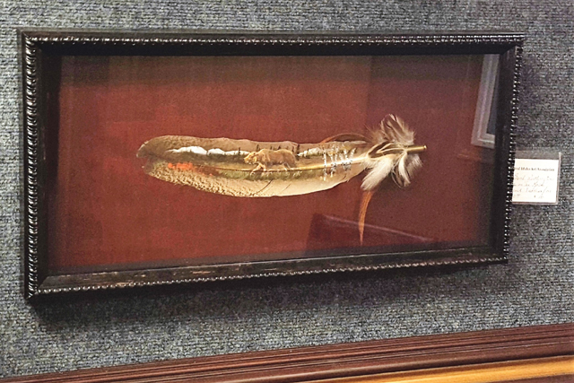 The People’s Choice winner at the CIAA show at Kamiah BBQ Days, “Griz on the Move” a scene painted on a feather.