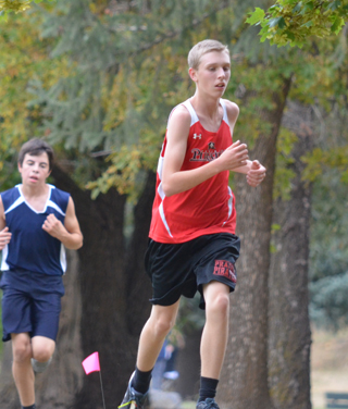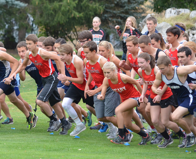 The start of the Junior/Senior race. Prairie runners in front from left are Luke SChwartz, Gavin Brandon and Grant Gehring. Behind them are Brandon Latimer, Kylie Tidwell and Ryan Glimp with Madison Ulmer aqnd Luis Flore behind them. Somewhere in there is Sierah Poxelitner. We think that might be her to Flores left. All photos by Shari Chaffee. PRAIRIE CROSS COUNTRY 2016 SEPTEMBER 10-Asotin hosted run at Chief Timothy Park, 9:45 a.m. 17-Seaport Invite-Clarkston 21-Bob Wiesel Invite, Moscow 13-Troy Invite District-TBA 29-State at Pocatello |