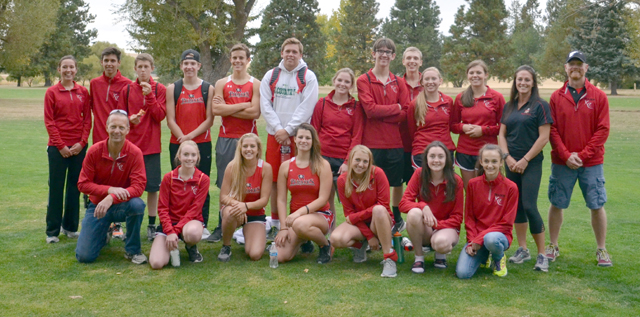 The crosscountry team after the races at Moscow. Front from left are Glenn Poxleitner, Jessie Sonnen, Kylie Tidwell, Madison Ulmer, Kodie Tidwell, Ciara Chaffee and Jacey Rambo. Back from left are Calli Perrin, Luis Flores, Luke Schwartz, Gavin Branson, Grant Gehring, Ryan Glimp, Sierah Poxleitner, Branon Latimer, James Villamor, Hope McIntire, Kendra Duclos, Jenny Arnzen and David Young.