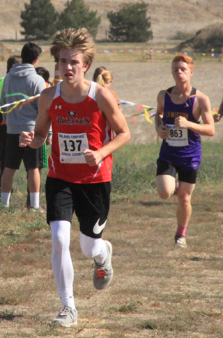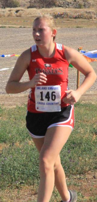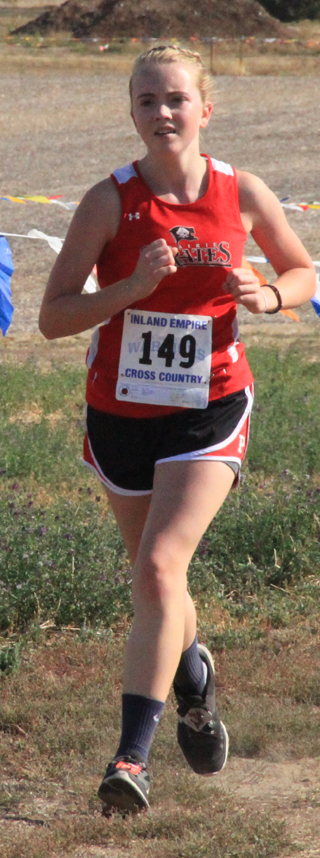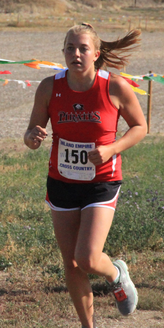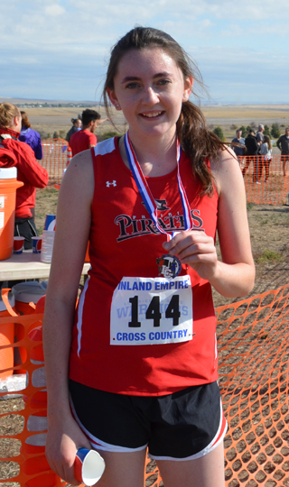Ciara Chaffee with her medal for finishing third. Photo by Shari Chaffee. Ciara Chaffee was Prairie’s lone medalist at the Inland Empire Crosscountry meet which was sponsored by LCSC Saturday, October 1 at Lewiston. Prairie had all of their runners in the JV races due to some scheduling conflicts for several of the runners. A few others missed the race due to illness. Chaffee finished 3rd in the girls JV race, coming from behind to nip a Sandpoint runner at the finish line. She had a time of 22:07. Kylie Tidwell was next to finish, taking 13th in a time of 23:48. Kendra Duclos was 16th in 24:17. Jacey Rambo was right behind Duclos in 17th in 24:19. Jessie Sonnen finished 23rd in 25:59 with Hope McIntire in 24th at 26:07, just nosing out Kodie Tidwell who was 25th, also clocked in 26:07. Sierah Poxleitner was 46th in 30:29. As a team Prairie was third behind Sandpoint and Cheney with 77 points. Gavin Branson was the top boys finisher, placing 28th out 150 runners in 19:25. Grant Gehring was 34th in 19:34. Next up was Luke Schwartz in 56th in 20:33. James Villamor was 74th in 21:02. Luis Flores was 114th in 22:48. Ryan Glimp was 125th in 23:46. Brandon Latimer was 128th in 23:50. As a team the boys placed 10th with 218 points. The next meet for the team will be the Troy Invitational on Thursday, Oct. 13. District will be at the Grangeville golf course Thursday, Oct. 20.