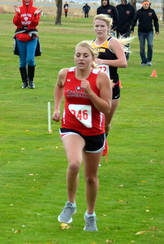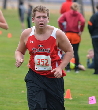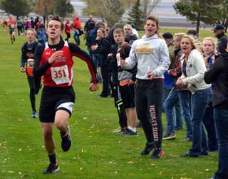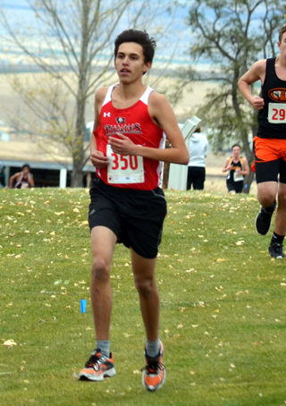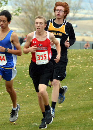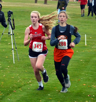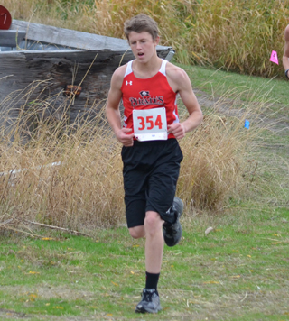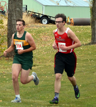 Grant Gehring had to pass 2 runners in the final half mile to qualify for state. Gavin Branson, in background, was sick all week and coach Glenn Poxleitner commended him for being able to finish.