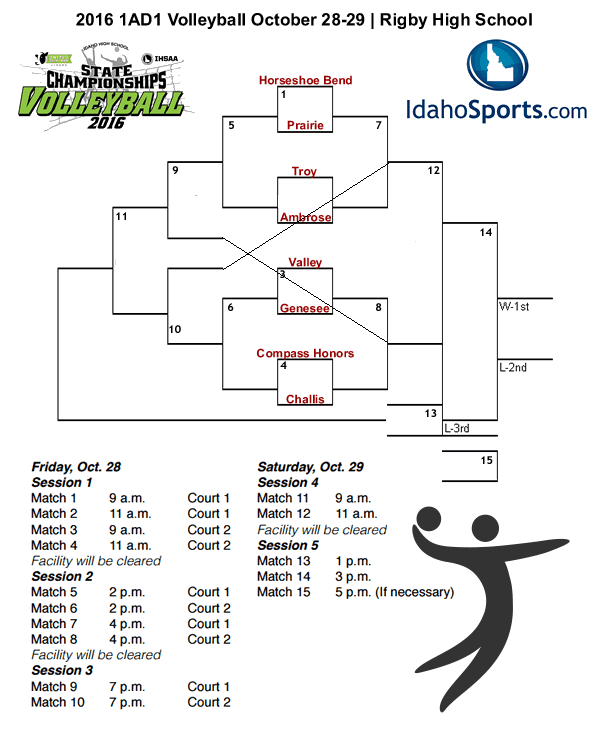 Angela Wemhoff and Leah Higgins against Wallace. ![]() 27-at Lewiston Tournament, won 1 match, lost 4. 27-JV at Genesee JV Tournament 30-Genesee*, there, C, JV, V, 5 p.m., lost 1 game to 3 7-JV at Sacajawea 9th, 5 p.m. postponed 8-Lapwai*, here, won 3 games to 1 10-JV and C teams at Grangeville JV Tournament 13-CV*, here, 4:30 p.m., won 3 games to 0 13-Orofino, here, 7 p.m., V only, lost 1 game to 3 15-Grangeville, there, C, JV, V, 5 p.m., lost 2 games to 3 20-Kamiah, there, C, JV, V, 5 p.m., won 3 games to 1 22-Genesee*, here, C, JV, V, 5 p.m., lost 1 game to 3 24-Border Battle at Pomeroy, won 4 of 5 matches 27-Lapwai*, there, won 3 games to 1 29-Troy*, here, C, JV, V, 5 p.m., lost 0 games to 3 8-Tri-Match vs. Potlatch* & CV* @ C.V., 1 p.m. V only, beat CV 3 games to 0; beat Potlatch 3 games to 1 10-JV at Sacajawea 9th, 5 p.m., rescheduled from Sept. 7 11-Grangeville, here, C, JV, V, 5 p.m., lost 2 games to 3, details next week 13-Potlatch*, there, C, JV, V, 4:30 p.m. 15, 17, 18,19-District at LCSC-beat Kamiah 3 games to 0, lost to Genesee 1 game to 3, beat Potlatch 3 games to 0, beat Lapwai 3 games to 1 , Third Place 20-Play-in vs. Wallace at Coeur d'Alene High School 5 p.m., won 3 games to 0 22-Play-in at Highland vs. Idaho City, won 3 games to 0 28-29-State at Rigby *League Game |