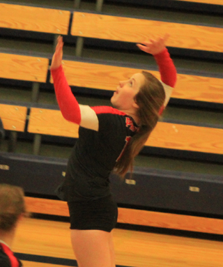 as she served Prairie from an 8-6 lead into an 18-6 lead before finally