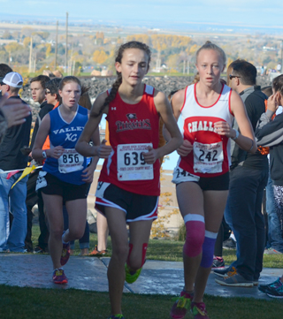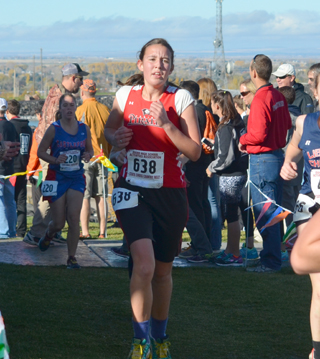 The Prairie girls cross-country team placed 5th at the state meet held Saturday, Oct. 29 at Pocatello. Ciara Chaffee was Prairie’s top finisher with a 34th place finish in 24:29.26. Next up was Jacey Rambo in 41st in 25:03.72. Kendra Duclos finished 53rd in 26:08.11 with Calli Perrin right behind in 54th in 26:11.68 and Jessie Sonnen in 55th in 26:19.15. Hope McIntire was 60th in 27:11.56 and Kodie Tidwell was 63rd in 30:24.86. The top five placers gave Prairie a total of 140 team points which tied them with Castleford. Prairie got 5th place on the tiebreaker which is the placing of a 6th team member. Castleford had only 5 runners so McIntire gave Prairie the 5th place nod. Prairie’s 7 team members include 3 freshmen-Chaffee, Rambo and Sonnen and 4 sophomores-Duclos, Perrin, McIntire and Tidwell. In the boys race Grant Gehring, a senior in his last race for Prairie, finished 78th in 21:27.37. He passed a runner from Valley right at the finish and according to coach Glenn Poxleitner “ran the race he wanted in the last race of high school cross country.”