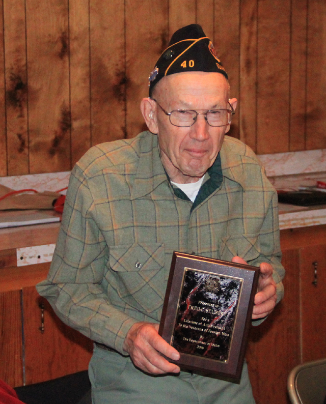 Fritz Seubert received a plaque recognizing his VFW