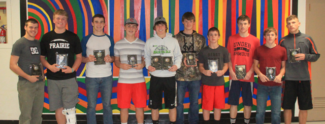 Football awards were given out Monday, Nov. 14. Shown are the JV and varsity award winners. From left are Jayce Huling, varsity defensive lineman of the year; Spencer Schumacher, varsity coaches award; Jace Perrin, varsity offensive lineman of the year; Hayden Uhlenkott, JV defensive lineman of the year; Brandon Anderson, varsity defensive player of the year and most valuable player; Garrett Bunce, JV offensive lineman of the year; Owen Anderson, JV defensive player of the year; Luke Wemhoff, varsity offensive player of the year; Michael Schwartz, JV coaches award and Derik Shears, JV offensive player of the year. PIRATES BOYS BASKETBALL SCHEDULE FOR 2016-2017 *indicates league game 3-Grangeville, there, Idaho County Shootout, V only, 7:30 p.m. 8-Troy, there* 15-C.V., here* 17-Lapwai, there*, (C,JV,V) 4:30 20-Asotin, Quad, there, 4:30 & 6 5-Moscow, there, (C,JV,V) 4 p.m. 7-Potlatch, there*, (C,JV,V) 1 p.m. 13-Genesee, here* 19-Kamiah, there* 21-Troy, here*, 4 p.m. 24-C.V., there* 27-Lapwai, here*, (C,JV,V) 4:30 30-Grangeville, here 4-Potlatch, here*, (C,JV,V) 1 p.m. 7-Moscow, here, (C,JV,V) 4 p.m. 9-Kendrick, here *League game 14-22-District at LCSC 23-State Play-In #1 TBA 25-State Play-In #2 TBA March 2-4-State at Caldwell PIRATES JR. HIGH BOYS BASKETBALL SCHEDULE FOR 2016-2017 15-Lapwai, there 17-Orofino, here 28-Asotin, here 29-Kamiah, here 13-C.V., there 15-Grangeville, here |