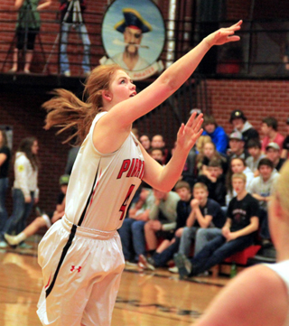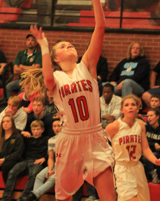 Kylie Tidwell had 4 of Prairie’s 7 points while Chaye Uptmor scored 2 and India Peery had the only made free throw in the quarter. Grangeville finally got on the scoreboard at the 6:51 mark of the second quarter when they made a free throw. Prairie twice led by 9 points in the second quarter, the first after a 3-pointer by Tidwell at 14-5 and the second after a 3-pointer by Jordyn Higgins that made it 19-10, which was the halftime score. After a 2 for 14 first half, Grangeville finally began to sink some shots in the third quarter while Prairie connected on just 2 of 15 attempts. That enabled the Bulldogs to pull within 2 points twice, at 21-19 and 23-21. The latter score is where it stood heading into the fourth quarter. Prairie finally started to sink some shots in the fourth quarter and Grangeville cooled down after the quarter break as the Pirates opened the fourth quarter with a 14-2 run that put the game away. Josie Peery started the run with a putback. Angela Wemhoff scored a lay-up after a steal. Tidwell added a free throw. Wemhoff then scored inside on a feed from Leah Higgins and Leah made it 33-21 with a 3-pointer on a feed from Chaye Uptmor. Grangeville finally got their first points of the fourth quarter at the 3:07 mark but Prairie then added 4 more points, all at the free throw line, for a 37-23 lead with just 57 seconds left. Each team added 4 more points. For the game Tidwell was the high scorer with 12 points. Wemhoff added 7 with Uptmor scoring 6. Leah and Jordyn Higgins scored 5 each with Josie Peery scoring 4 and Sydney Bruner and India Peery adding 1 point each. Prairie held a 39-35 edge on the boards led by Josie Peery with 13. Leah Higgins added 10 rebounds. Wemhoff had 6 steals and Uptmor had 3 assists. Grangeville had 31 turnovers while Prairie had 22. Prairie was 15 for 53 from the field, 28%, and 8 for 19 at the line, 42%. Grangeville was 9 for 37 from the field, 24%, and 8 for 13 at the line, 62%. Prairie is now 3-0 on the season. The JV team also won by a score of 45-25. Kodie Tidwell got Prairie off to a good start with a pair of steals that led to baskets and a 4-0 lead. Kristyna Krogh added a free throw to make it 5-0. Grangeville finally scored at the 4:00 mark. Grangeville twice pulled within 3 points as Prairie failed to capitalize on all the free throw opportunities they were given. Krogh ended the quarter though by connecting on 3 of her final 4 free throw attempts after making just 1 of her first 7. In all Prairie was 4 for 16 at the line in the opening quarter as apparently Grangeville’s defensive plan was to foul. Prairie led 10-4 at the end of the quarter. A 6-1 run to open the quarter extended the lead to 16-5. Sarah Ross opened the quarter with a steal and ensuing lay-up. Prairie eventually led 22-7 as Alexis Hiler and Kendra Duclos each scored off of a steal and Tidwell added a basket. Grangeville scored 3 at the stripe but a basket off of a steal by Theresa Wemhoff and a final basket of the half by Duclos made it 26-10 at the break. In the third quarter Grangeville banged home some 3-pointers to get back within 7 points at 28-21 but Prairie finished the third quarter with an 8-0 run to make it 36-21. Hiler started that run with a basket inside. Krogh hit a 3-pointer then Tidwell converted a 3-point play. Prairie expanded on their lead in the fourth as Tidwell added 4 more points and Hiler and Hope McIntire had 2 each. Grangeville tried to get back into the game with 3-pointers but went 0 for 8 from long range and 2 for 16 overall in the quarter. Prairie had 3 scorers in double figures led by Hiler with 13. Tidwell scored 11 and Krogh 10. Duclos added 5 points with Wemhoff, Ross and McIntire adding 2 each. Prairie had a 43-35 edge on the boards led by Krogh with 12. Hiler added 9 and Wemhoff and Duclos had 7 rebounds each. Krogh had 8 steals with Wemhoff adding 5 steals and 5 assists. Prairie was 18 for 43 from the field, 42%, and 8 for 31 at the line, 26%. Grangeville was 8 for 40 from the field, 20%, and 6 for 16 at the line, 38%. Grangeville wound up getting tagged with 27 fouls with 2 players fouling out. Due to varsity swing players leaving in the fourth quarter they had just 4 available players for the final 4 minutes of action and 2 of those finished with 4 fouls. Prairie was whistled for 18 fouls with only 1 fouling out. The C team also won, making it a clean sweep, 43-30. Prairie 7 12 4 18 -41 Grangeville 0 10 11 6 -27 Prairie-Tidwell 4-10, 3-6, 12; Wemhoff 3-10, 1-3, 7; J. Peery 2-7, 0-1, 4; Uptmor 2-10, 2-3, 6; L. Higgins 2-6, 0-2, 5; J. Higgins 2-8, 0-0, 5; Bruner 0-0, 1-2, 1; I. Peery 0-2, 1-2, 1. 3-pointers-Tidwell, L. Higgins, J. Higgins. Grangeville-Lindsley 2-12, 1-2, 6; Dame 2-5, 0-0, 4; Bush 1-7, 0-2, 2; Kennedy 2-7, 4-4, 8; Kelley 1-2, 3-4, 5; Norman 1-1, 0-1, 2; Ruzicka 0-0, 0-0, 0; Canaday 0-3, 0-0, 0. 3-pointers-Lindsley.