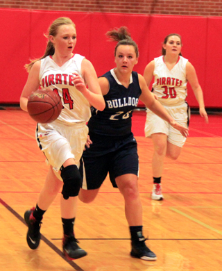 In what could best be called an ugly game the Prairie Lady Pirates defeated Grangeville 41-27 at Cottonwood Tuesday, Nov. 22. Prairie made just 3 of 17 shots from the field and 1 of 4 at the line in the first quarter but managed to take a 7-0 lead as Grangeville was 0 for 8. If Prairie has ever shut out Grangeville in a quarter before, it had to be a long, long time ago.