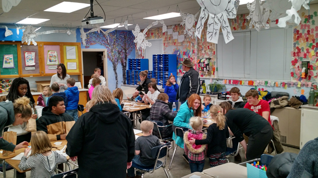 High school students help younger kids put together their snow globe in the PHS Science lab. Photos above provided by Loretta Poxleitner. |