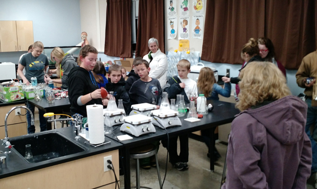 Many thanks to Mrs. McLeod and her Natural Science students for all their work to make the "Chemis-Tree" science night a success last week. Despite extra cold temperatures and a last minute change of venue due to a broken heater, we had a great turn out of kids of all ages looking for some hands-on science fun. Students cut trees from blotting paper to take home and grow crystals on. They helped make their own snow globe and Christmas ornament and they made snow. This service learning project was sponsored by GEAR UP Idaho, a federal college and career readiness grant.