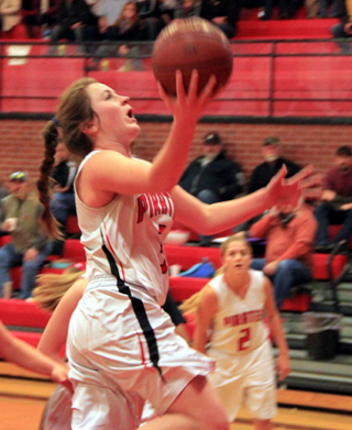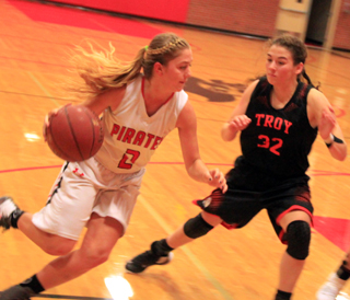 Prairie jumped out to a 5-0 lead in the game as Prairie threw a swarming full-court press at the Trojans. Wemhoff opened the scoring by hitting a free throw after making a steal. Two steals by Tidwell led to a basket each by Uptmor and Wemhoff. Troy answered with a pair of baskets by 6’ post Abby Blum. A free throw by Josie Peery and a steal and drive for a lay-up by Wemhoff made it 8-4. Troy came back to tie it at 8-8 but Wemhoff scored off another steal and India Peery followed with her own steal and basket to make it 12-8 at the quarter break. Prairie started the second quarter with a 12-4 run that gave them a 24-12 lead. Tidwell scored on 5 of 8 free throw attempts in the quarter including 2 in the final minute that gave Prairie a 26-16 halftime lead after Troy had pulled within 8. Prairie struggled with their shooting in the third quarter as they went scoreless for 6:38 as Troy posted 8 straight points to cut the margin to 2 at 26-24 with 1:45 left. Tidwell finally broke the drought with a lay-up off a feed from Uptmor. Tidwell then fed Wemhoff for a basket inside to make it 30-24 after 3 quarters. A steal by Wemhoff led to a basket by Leah Higgins to open the fourth quarter. Wemhoff picked up another assist on an inbounds pass to Bruner who made a nice post move to get the ball up past Blum. A 10 foot jumper by Uptmor and lay-ups from Leah Higgins and Wemhoff completed Prairie’s 14-0 run and put them up 40-24. Troy finally broke their scoring drought of 6 minutes with a basket but a perimeter jumper by by Tidwell and a 2 free throws by Uptmor made it 44-26 and completed an 18-2 run. Troy scored 5 unanswered points, all at the free throw line to get back within 13. Bruner broke that run by putting back a missed free throw. Troy then scored the game’s final 4 points to cut the final margin to 11. Wemhoff wound up as Prairie’s leading scorer with 13 points and added 6 steals, 5 rebounds and 4 assists. Tidwell scored 9 points and also had 6 steals with 3 assists. Uptmor scored 8 and had 5 steals and 5 rebounds. Bruner scored 6 while Leah Higgins and India Peery scored 4 each and Josie Peery scored 2. Troy dominated the board 29-44 with Leah Higgins leading Prairie with 7. Blum had 16 points and 17 rebounds for Troy but the Trojans had just 1 other player scored more than 3 points. Prairie was 17 for 47 from the field, 36%, and 10 for 20 from the line, 50%. Troy was 12 for 41 from the field, 29%, and 11 for 17 at the line, 65%. Prairie is now 9-0 on the season and 4-0 in league play. The JV team rolled to another easy win, 64-11. Prairie scored the first 14 points of the game and led 19-2 at the end of the first quarter. They then scored the first 19 points of the second quarter to complete a 24-0 run as they led 38-2 with 1:50 left in the half. To that point Troy’s only 2 points came at the free throw line. Troy finally scored their first basket with 1:31 left in the half. Prairie led 42-6 at the halftime break. The onslaught continued in the second half as Prairie scored the first 10 points of the third quarter and the first 10 of the fourth quarter. Troy finally broke into double figures with a pair of free throws with 21 seconds left. Theresa Wemhoff led a balanced scoring attack with 10 points and added 4 steals. Kristyna Krogh scored 9 points while Alexis Hiler and Sarah Ross scored 8 each. Ciara Chaffee scored 7. Kodie Tidwell and Kendra Duclos scored 6 each. Sierah Poxleitner and Brooklyn Riener scored 4 each and Alexis Shears scored 2. Prairie dominated the boards 35-18. Ross led the team with 7 with Chaffee adding 6. Tidwell and Wemhoff had 4 steals each while Wemhoff had 5 assists and Tidwell had 3. Prairie was 27 for 52 from the field, 52%, and 10 for 21 from the line, 48%. Troy was 3 for 23 from the field, 13%, and 5 for 9 at the line, 56%. Prairie 12 14 4 16 -46 Troy 8 8 8 11 -35 Prairie-Tidwell 2-10, 5-8, 9; Wemhoff 6-9, 1-4, 13; J. Peery 0-6, 2-4, 2; Uptmor 3-8, 2-2, 8; L. Higgins 2-6, 0-0, 4; Bruner 3-6, 0-0, 6; J. Higgins 0-2, 0-1, 0; I. Peery 2-3, 0-1, 4. 3-pointers-none. Troy-Schetzle 2-8, 4-4, 8; Hoskins-Oakley 1-2, 0-0, 2; Blum 7-13, 2-3, 16; J. Gilder 0-3, 2-3, 2; Frederickson 0-5, 2-3, 2; B. Gilder 1-5, 1-2, 3; Girard 1-5, 0-1, 2; Doumit 0-1, 0-0, 0; Johnson 0-0, 0-0, 0. 3-pointers-none.