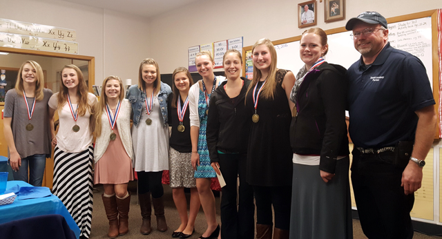 Summit Academy held their volleyball banquet on December 5th. Awards were given to: Lexi Currier, most improved; Taylor Lustig, most inspirational; Bridget Beckman, GoGoGet'em; Ally Sonnen, most valuable player. All eight team members played at the varsity level. Ally Sonnen was also a District All Star player and was awarded the White Pine League 1A Division II Player of the Year. Pictured from left to right are: Hailey Stubbers, Erin Chmelik, Lexi Currier, Kayla Rehder, Taylor Lustig, Ally Sonnen, Asst Coach Jamie Johnson, Lucy Osborne, Bridget Beckman and Coach Allen Sonnen. Photo provided by Summit Academy. Please join us at Summit Academy for a Nativity Program on Thursday, December 15th at 7 pm. Summit students will present "The Whole World Celebrates: the Coming of the King". Christmas traditions in countries around the world will be represented with student performances and presentations. After the program the festival begins! Guests may visit each country's booth to learn more about their traditions and sample a regional Christmas treat. Summit girls lose twice The good news is that the Summit Academy Lady Patriots held Deary to just 19 points in their game Friday, Dec. 9 at Deary. The bad news is they only scored 15 themselves as they lost their third straight game. Summit trailed 4-5 after one quarter but rallied in the second quarter to take a 12-10 lead at the half. The two teams combined for just 2 points in the third quarter, both by Deary as the game was tied at 12-12 after 3 quarters. Deary then outscored Summit 3-7 in the fourth. Taylor Lustig led the Patriots in scoring with 6 points with Ally Sonnen scoring 5 and Lauren Stubbers 4. Summit’s game at Timberline scheduled for Tuesday, Dec. 6, was postponed due to the fact that Timberline called off school that day due to weather. Summit is now 0-3 on the season and in league play. Summit 4 8 0 3 -15 Deary 5 5 2 7 -19 Summit-A. Sonnen 2, 1-3, 5; Beckman 0, 0-0, 0; Chmelik 0, 0-0, 0; Currier 0, 0-0, 0; Lustig 3, 0-0, 6; Stubbers 2, 0-0, 4; J. Sonnen 0, 0-0, 0. 3-pointers-none. Deary-Heath 0, 2-2, 2; Burnette 0, 0-0, 0; Ma. McManus 1, 0-0, 2; Swanson 1, 1-2, 3; S. Anderson 3, 1-4, 7; Thompson 0, 0-0, 0; Me. McManus 0, 0-0, 0; Bogar 0, 0-0, 0; Beyer 0, 0-0, 0; Proctor 2, 1-2, 5; T. Anderson 0, 0-0, 0. 3-pointers-none. SUMMIT GIRLS BASKETBALL SCHEDULE FOR 2016-17 6-Timberline, there, postponed due to weather 9-Deary, there, lost 15-19 13-Nezperce, there, lost 35-47, details next week 17-Logos, there 1 p.m. 13-Kendrick, there 17-Timberline, here, 7 p.m. 21-Deary, here 1:30 p.m. 24-Nezperce, here, 7 p.m. 28-Logos, here 3 p.m. |