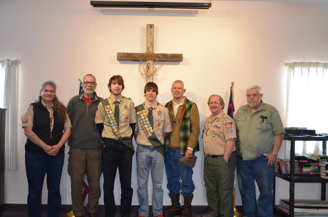 Berdoy. Pictured from left are Shari Chaffee, Scoutmaster, Scout parent