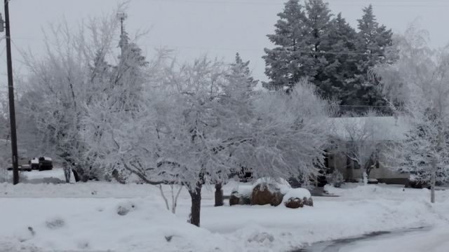 Hoarfrost on the trees at St. Mary’s Hospital last