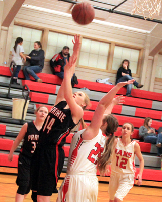 Meanwhile Kylie Tidwell scored 9 first quarter points with Chaye Uptmor and Angela Wemhoff adding 6 each and Josie Peery 5 as Prairie took a 33-0 lead after one quarter. After the first quarter was over Prairie backed off on the pressure, keeping the defense mostly inside the 3-point arc and still outscored C.V. 15-4 in the second quarter. Uptmor scored 6 more in the quarter while Leah Higgins pumped in 5 points. Bench players got a lot of playing time in the quarter. Prairie opened the third quarter with a 17-2 run with Wemhoff scoring 10 of those 17 points on 5 for 6 shooting. Prairie led 69-8 after 3 quarters. The edge was 11-1 in the fourth quarter which was played with a running clock. Wemhoff wound up as the leading scorer with 18 points with Uptmor adding 14, Tidwell 12, Leah Higgins 11, India Peery 9, Josie Peery 5, Kristyna Krogh 4, Jordyn Higgins and Sydney Bruner 3 each and Theresa Wemhoff 1 as every player scored. All of C.V.’s points were scored by the Pfefferkorn twins with 7 by Torrie and 2 by Taylor. Prairie also dominated on the boards 48-22. Bruner led Prairie with 8 rebounds with Angela Wemhoff, Leah Higgins and Krogh each grabbing 6. India Peery had 6 steals and Jordyn Higgins had 5 assists while Angela Wemhoff had 4 steals and 4 assists. Prairie was 33 for 76 from the field, 43%, and 11 for 20 at the line, 55%. C.V. was 2 for 20 from the field, 10%, and 5 for 12 at the line, 42%. The JV game was just as lopsided as the varsity game as Prairie won 32-2 in just 2 quarters of play. Prairie led 20-0 after 1 quarter and led 23-0 when C.V. got their only 2 points. Prairie played the 5 starters the first quarter and went exclusively to subs in the second quarter. Kodie Tidwell led the scoring with 7 points with Alexis Hiler scoring 5. Kendra Duclos scored 4 and Sierah Poxleitner 3. Theresa Wemhoff, Kristyna Krogh, Sarah Ross, Brooklyn Riener, Hope McIntire and NakoniaNuttman scored 2 each and Alexis Shears scored 1. Prairie had a 27-12 advantage on the boards with Hiler and McIntire grabbing 5 each to lead the team. Tidwell had 4 steals and McIntire had 2 assists. Prairie was 13 for 33 from the field, 39% and 4 for 14 at the line, 29%. C.V. was 1 for 12 from the field, 8% and 0 for 2 at the line. Prairie 33 15 21 11 -80 C.V. 0 4 4 1 - 9 Prairie-Tidwell 5-11, 1-1, 12; A. Wemhoff 9-17, 0-0, 18; J. Peery 1-4, 3-6, 5; Uptmor 6-12, 2-3, 14; L. Higgins 5-10, 1-1, 11; J. Higgins 1-5, 1-4, 3; Bruner 1-4, 1-2, 3; I. Peery 4-6, 0-0, 9; Krogh 1-4, 2-2, 4; T. Wemhoff 0-3, 1-2, 1. 3-pointers-Tidwell, I. Peery. C.V.-To. Pfefferkorn 2-4, 3-4, 7; Proctor 0-3, 0-0, 0; Reuben 0-6, 0-4, 0; Ta. Pfefferkorn 0-2, 2-4, 2; Lenhart 0-2, 0-0, 0; Gianopulos 0-3, 0-0, 0; Edmundson 0-0, 0-0, 0; Roy 0-0, 0-0, 0; Georges 0-0, 0-0, 0; Tatu 0-0, 0-0, 0. 3-pointers-none. Lapwai