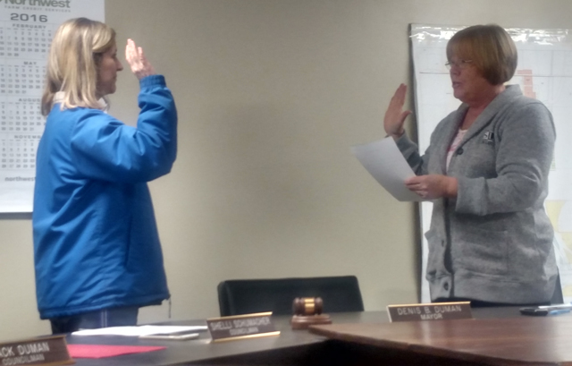 gets sworn in as mayor of Cottonwood by City Clerk Carol Altman. She replaced