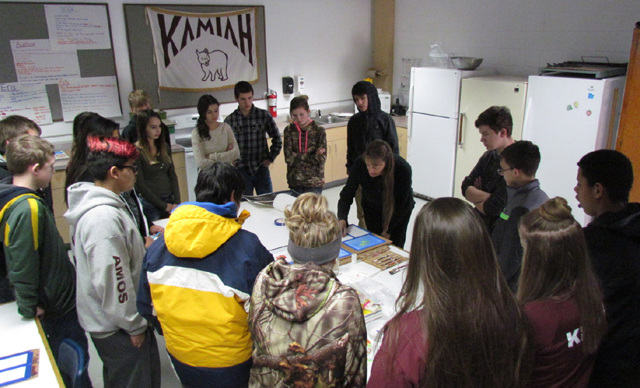 Pearl Maxner of the Central Idaho Art Association gives art demonstrations to High School (top photo) and Jr. High students (lower photo). Photos provided by Marlene O’Neill. |