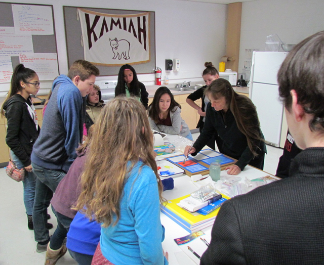 Central Idaho Art Association (CIAA) member, Pearl Maxner, demonstrated and gave art lessons to both Junior High and High Schoolers at Kamiah January 5th and 6th. Kamiah BBQ Days ultimately provided this venue. A private CIAA donor gave $100 worth of supplies to Kamiah art teacher, Ben Henderson, for promoting arts in the schools. Ms. Maxner teaches watercolor annually in March at the Monastery of St. Gertrude Spirit Center. She currently teaches art at the Kamiah Bible School Academy. Other CIAA members will be demonstrating at the Kamiah school this next semester.