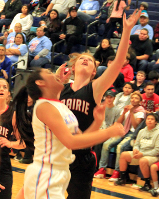 Prairie scored first in the game on a drive to the hoop by Angela Wemhoff and led again at 3-2 when Wemhoff sank the second of a pair of free throws. Lapwai then scored 5 straight points and led until India Peery sank a 3-pointer in the final seconds of the quarter to give Prairie a 10-9 lead. Lapwai scored the first 3 points of the second quarter to retake the lead but a basket inside on an inbounds play by Josie Peery and a runner by Tidwell put Prairie back on top at 14-12. Lapwai scored the next 3 points but Prairie took the lead again on a basket by Josie Peery with 2:52 left that made it 16-15. That lead lasted 22 seconds and was Prairie’s final lead of the game as Lapwai scored the next 5 points. Tidwell sank a couple of free throws in the final seconds of the half to make it 18-20 at the halftime break. In the third quarter Prairie struggled to score as they hit just 2 of 12 from the field with 4 of the 10 misses being blocked shots. Meanwhile Lapwai’s Iris Domebo, who had scored just 3 points in the first half, scored 7 in a 3-16 run by the Wildcats that opened up a double digit lead. Bruner scored 3 and India Peery 2 for Prairie’s only points of the quarter. The onslaught continued in the fourth quarter. Wemhoff, who picked up her fourth foul in the third quarter, scored to open the fourth but Lapwai then scored the next 9 straight and led by as many as 26 points at 29-55. Prairie outscored them 7-1 over the final 2:10 to cut the final margin to 20. Bruner scored 9 to lead Prairie with Tidwell, Wemhoff and India Peery scoring 7 each and Josie Peery 6. Prairie had a 44-37 edge on the boards with Josie Peery grabbing 12 and Bruner 11 to lead the team. Tidwell, Jordyn Higgins, Wemhoff and Bruner each had 2 steals for the Pirates while Jordyn and Leah Higgins each had 2 assists. Prairie was 12 for 46 from the field, 26%, and 11 for 20 at the line, 55%. Lapwai was 21 for 61 from the field, 34%, and 11 for 19 at the line, 58%. Prairie had 21 turnovers in the game compared to 14 for Lapwai. Prairie finishes the regular season with an 18-2 record overall, 10-2 in league play. They open District play Thursday, Feb. 2 at 7:30 p.m. against the highest remaining seed from the play-in games, which is likely to be Troy. The JV team also lost only their second game of the season, also both to Lapwai, by a score of 38-69. The score was tied at 6-6 in the first quarter when Lapwai put together a 0-14 run to take control of the game. They led 8-22 after one quarter, 17-36 at the half and 28-47 after 3 quarters. Kendra Duclos wound up as Prairie’s leading scorer with 10 points with Kodie Tidwell scoring 8. Alexis Hiler scored 6, Kristyna Krogh 5, Sarah Ross 4 and Ciara Chaffee and Hope McIntire 2 each. Prairie had a 51-42 edge on the boards with Duclos and Chaffee each grabbing 11 to lead the team. Tidwell had 6 steals and 2 assists while Hiler also had 2 assists. Prairie was 11 for 57 from the field, 19%, and 16 for 39 at the line, 41%. Lapwai was 27 for 68 from the field, 40%, and 9 for 11 at the line, 82%. Prairie 10 8 5 13 -36 Lapwai 9 11 16 20 -56 Prairie-Tidwell 2-12, 3-5, 7; A. Wemhoff 3-10, 1-3, 7; J. Peery 2-7, 2-2, 6; L. Higgins 0-2, 0-0, 0; Bruner 2-3, 5-10, 9; I. Peery 3-11, 0-0, 7; J. Higgins 0-1, 0-0, 0; T. Wemhoff 0-0, 0-0, 0. 3-pointers-I. Peery. Lapwai-Holt 2-11, 4-7, 8; I. Domebo 4-14, 1-2, 10; Chimburas 2-4, 0-0, 4; Young 5-13, 2-3, 13; J. Wilson 2-4, 0-0, 4; Mitchell 1-3, 2-3, 4; Wisdom 0-0, 1-2, 1; R. Domebo 5-8, 0-0, 11; Tannehill 0-0, 0-0, 0; M. Wilson 0-2, 0-0, 0; Bohnee 0-1, 1-2, 1. 3-pointers-I. Domebo, Young, R. Domebo.