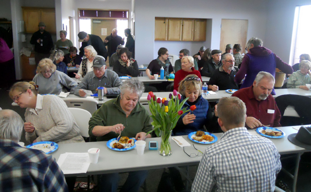 Nearly fifty people attended a breakfast hosted by the Idaho County Democrats, Sunday morning, January 29. The event was held at the Soltman Center on Main Street in Grangeville. The free breakfast featured fruit salad, breakfast casseroles, crumbles, breads, coffee, tea and juice. The entire county was represented from Pollock to Kamiah and Elk City to Winchester. The meat of the meeting was a presentation given by Mat Erpelding of Idaho State Legislative District 12, Boise. Erpelding reported on the current legislative actions focusing on issues surrounding public lands, economy and education as well as the future of Idaho. The detrimental impacts of current and proposed federal regulations on Idaho County agricultural economy was discussed. Tom Hamilton, IDP and photographer Dean Ferguson were also in attendance. Hamilton gave an update on the current IDP Chair, Sally Boynton-Brown's campaign for National Democratic Party Chair. The next monthly ICDP meeting will be 6:30 PM, Monday, February 13 at the Grangeville Senior Center. Please contact Michelle Perdue at 983 3763 for carpooling or more information, or visit the ICDP Facebook page for updates.