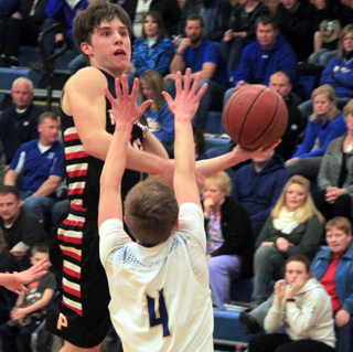 Genesee rallied back to tie the game at 9 then Chaffee hit the first of his 6 threes on the night. He added a short baseline jumper and Schlader connected on a 3 for a17-9 lead. After a 3-point play by Genesee, Wemhoff closed out the quarter by banking in a 3-pointer in the final seconds for a 20-12 lead. A basket by Spencer Schumacher and a tip-in by Chmelik pushed the lead to 12 at 24-12. Genesee got back within 7 at 24-17 then it was the 3-ball show for Chaffee. Chaffee attempted five 3-pointers over the next 3 minutes and made 4 of them to push the Pirates lead to 38-21. Prairie led 46-25 at the half as Spencer Schumacher closed out the half with a buzzer-beating 3-pointer. In the third quarter Chmelik was 4 for 4 from the field and the rest of the team was 3 for 5 including Chaffee’s 6th 3-pointer as the Prairieled by as many as 24 points at 57-33. They still led 61-39 heading into the fourth quarter. In the meantime, Genesee had put junior guard Coy Stout on Chaffee to keep him from getting any more good looks on 3-point attempts. In the fourth quarter Prairie pushed their lead to 26 at 65-39 after a pair of baskets by Schlader. Genesee then started their rally. Prairie went to a flex offense to run clock and work toward a lay-up. Genesee was able to go on a 1-14 run that pared the lead down to 13 points. At that point Branson went to the line for a 1 and 1. He made the first and Schlader rebounded the missed second shot which led to another 1 and 1 by Anderson, who also made the first and missed the second. That made it 68-53 with 1:46 left. Prairie’s final 7 points of the game came on free throws out of 15 attempts. It was enough that Genesee never got any closer than the 11-point final margin. Chaffee wound up with 21 points on 7 for 13 shooting with six 3-pointers. Chmelik wound up with 18 points on 9 for 12 shooting. Schlader, Branson and Anderson each scored 7 and Wemhoff and Spencer Schumacher each scored 6. Schlader had 12 rebounds and Chmelik 8 to lead Prairie to a 29-19 advantage on the boards. Branson and Wemhoff each had 7 assists and Branson, Wemhoff and Chaffee each had 1 steal. Prairie was 26 for 45 from the field, 58%, and 10 for 18 at the line, 56%. Genesee was 20 for 44 from the field, 45%, and 12 for 16 at the line, 75%. There were only 6 turnovers for each team in the game. In the JV game Prairie rolled to a 46-19 win. Prairie trailed 5-8 in the first quarter then scored 16 straight points. They led 13-8 at the end of the quarter and finished off the run with the first 8 points of the second quarter. Derik Shears had 6 of those 16 points and Dylan Schumacher had 7. Damian Forsmann had the other 3 on a 3-pointer. After a basket by Genesee, Prairie finished off the half with 11 straight points, outscoring the Bulldogs 19-2 in the second quarter. They took a 32-10 lead at the half. The scoring pace slowed considerably in the third quarter as Prairie hit just 2 of 10 shots and Genesee was 1 for 6 as the Pirates outscored them 4-2. Owen Anderson sank a pair of 3’s in the fourth quarter to help Prairie outscore Genesee 10-7 in the final period. Schumacher wound up with 14 points to lead the scoring with Shears adding 10. Anderson scored 8, Forsmann 7, Hayden Uhlenkott 3 and Devin Ross and Carson Schmidt 2 each. Prairie had a 25-19 rebounding edge led by Schumacher with 9 and Ross with 7. Forsmann had 3 steals and Schumacher had 7 assists. The JV’s were 20 for 41 from the field, 49%, and 1 for 3 at the line, 33%. Genesee was 7 for 27 from the field, 26%, and 3 for 6 at the line, 50%. Prairie 20 26 15 11 -72 Genesee 12 13 14 22 -61 Prairie-Schlader 3-5, 0-1, 7; Chmelik 9-12, 0-0, 18; Chaffee 7-13, 1-2, 21; Branson 2-5, 2-4, 7; Anderson 1-3, 5-6, 7; Wemhoff 2-3, 1-3, 6; S. Schumacher 2-4, 1-2, 6; Ott 0-0, 0-0, 0. 3-pointers-Chaffee 6, Schlader, Branson, Wemhoff, Schumacher. Genesee-Dermeerleer 4-8, 2-3, 11; T. Stout 6-11, 1-2, 17; Becker 3-7, 0-1, 7; Borth 1-7, 4-5, 6; Ky. Moser 0-4, 0-0, 0; Allen 2-3, 2-2, 7; C. Stout 2-2, 1-1, 6; Frasure 2-2, 2-2, 7; Ko. Moser 0-0, 0-0, 0. 3-pointers-T. Stout 4, Dermeerleer, Becker, Allen, C. Stout, Frasure. Prairie
