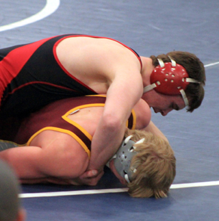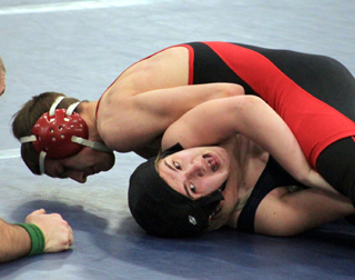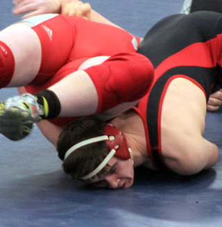 Jace Perrin is about to pin Austin Corey of C.V. FEBRUARY 8-Potlatch Duals, late schedule addition, details next week 18-Districts at Grangeville 24 & 25-State at Nampa |