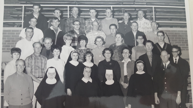 In anticipation of Central Idaho Art Association’s (CIAA) 50th Spring Show, May 4, 5, and 6, CIAA celebrates Founding Member, Walter Ruhoff. The 50th Show remains at the Bicentennial Historical Museum and will feature the art of founding members. Walter Ruhoff loved community activities and enjoyed being a part of the new Central Idaho Art Association. Mr. Ruhoff’s daughter, Carole Thaxton, said, “There is a painting Dad did of a tiny, run-down cabin on his 40 acres that was used by the previous owners when they cut firewood. Dad liked painting outdoor scenes; of course he was very busy with family and business, so didn't paint as much as he'd liked.” She said he was quite involved in the arts and it enriched his life. Walt was also involved in photography. He enjoyed his friendship with Ladd Arnoti and members of CIAA. When Mr. Ruhoff was in high school he made several model airplanes out of balsa wood and tissue paper that were suspended in his room. He also spent many retirement hours in his workshop creating wooden scroll saw art - and sold many of those pieces. One of his favorites was the "Crown of Thorns" scene. Ms. Thaxton said that her mother had the Crown of Thorns etched onto his tombstone in Cottonwood, as it meant so much to both of them. She added, “He liked art in all its various forms!” He took a painting class at the College of St. Gertrude night school and Carole Thaxton contributed one of his pictures of such class. Mr. Ruhoff appears to be 2nd from right in the 2nd row from the bottom.