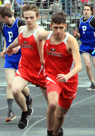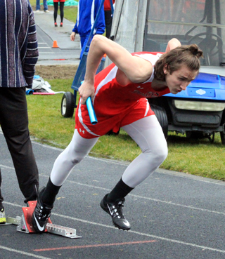 Anthony Karel at the start of the 4x200 relay. 2017 Prairie Track Schedule MARCH 23-Kamiah meet 21-Kamiah Meet 25-Orofino Meet 29-Whitepine Championships, at Lapwai, 10 a.m. 12-13-District 1 & 2 Regional Championships, Kootenai High School, Harrison, ID 19-20-1A State Championships, Middleton High School |
