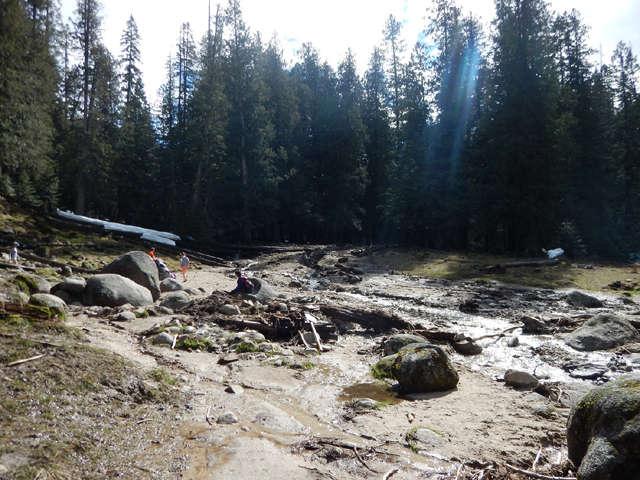 The lower Jerry Johnson Hot Springs pools have been filled in by runoff. Photo by U.S. Forest Service. |