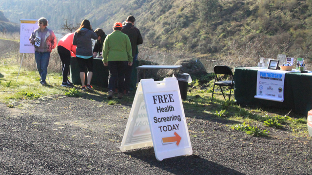 Leah Kaschmitter signs in some walkers. Health screenings were also done prior to the walk. |