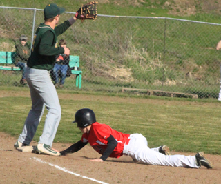 Michael Schwartz beats a pickoff throw to first in the second game at Potlatch. He had just singled to score Spencer Schumacher with Prairie’s second run of the game. 2017 Prairie Boys Baseball Schedule MARCH 23-CV, there, 4:00, won 6-1 25-Genesee, here, 10:00 a.m., postponed 28-Lapwai, at Clearwater Field, 4:00, postponed 7-Glenns Ferry Tournament – Glenns Ferry, 3:00 p.m. MDT, lost 2-12 8-Glenns Ferry Tournament – Declo, 9:00 a.m. MDT, won 3-2 8-Glenns Ferry Tournament – Nampa Christian, 11:30 a.m.MDT, cancelled 11-Lapwai, here, 4:30, lost 7-10 13-Grangeville, there, 4:00, cancelled 15-Potlatch, here, (2), lost 0-10 and 2-5 18-Nezperce, here, 4:30, rescheduled to Friday, April 21 20-CV, here, 4:00, rescheduled to Wednesday, April 19, won 5-4, details next week 21-Nezperce, here, 4:00 27-Genesee, there, (2), 4:00 29-Troy, there, (2), 11:00 5-12-District at Orofino, TBA 19-20-State at Lewiston, TBA |