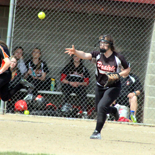 Troy scored their 2 runs on 2 singles, 2 walks and an error. They had the bases loaded with 1 out but back to back pop flies to short got Prairie out of the inning. Prairie scored 1 in the third as Remacle led off with an infield single. She went to second on a wild pitch and scored on Higgins’ single to left. Troy didn’t score in the bottom of the third but neither did Prairie in the fourth and Troy was able to tie it again in the bottom of the fourth on a single and an error. In the fifth Remacle led off with a double to left, advanced to third on a groundout and scored on a wild pitch for a 6-5 Prairie lead. Uhlenkott shut out Troy in the bottom of the fifth and Prairie took a 1-run lead into the top of the sixth. Things fell apart for Troy in the sixth. Kodie Tidwell started the inning by reaching on an error and then stole second. Noelle Uhlenkott scored Tidwell with a single up the middle. At that point Troy’s pitcher seemed to run out of gas as she walked the Kylie Tidwell and Faith Uhlenkott with Noelle advancing to third on a wild pitch to Tidwell and scoring on a wild pitch to her sister Faith. Ross then doubled home both remaining baserunners. Remacle was hit by a pitch and another wild pitch advanced both runners. Bruner then singled to left to score both baserunners. At this point there was 6 runs scored and still no one out. Bruner was then forced at second for the first out of the inning. Peery singled to left and Kodie Tidwell hit a grounder toward third that got deflected to the shortstop who threw out Higgins trying to score. Peery wound up scoring on a wild pitch and Kodie scored on Noelle Uhlenkott’sbloop single to right. Kylie Tidwell walked on 4 pitches to load the bases. Faith Uhlenkott then popped up to the pitcher, who dropped the ball allowing Kodie to score. Ross then singled home Noelle. Another error allowed Kylie to score. Remacle was hit by a pitch to load the bases. Bruner singled to right to score Faith and Ross. Higgins then reached on a swinging strike 3 passed ball with another run scoring to make it 13 runs in the inning and a 19-5 lead. Faith Uhlenkott then just needed to get through the bottom of the sixth without allowing more than 4 runs and the game would be over. After the long inning though she came out and walked the first 3 batters on just 13 pitches and the 1 strike was a swinging strike at a pitch out of the zone. The leadoff hitter scored on a wild pitch. Uhlenkott then found the strike zone getting a 0-2 count before inducing a popup to Kylie Tidwell at short. The next hitter then singled to score 2 runs. After a walk and a strikeout, an error scored the fourth run of the inning. The game then ended on a grounder to Higgins at second base. Prairie had 15 hits in the game. Ross and Remacle each had a double and 2 singles. Ross had 3 RBI while Remacle had 2. Noelle Uhlenkott had 3 singles and 2 RBI. Bruner had 2 singles and 4 RBI. Higgins had an RBI single and Peery and Kodie Tidwell each had a single. Uhlenkott allowed 9 runs on 7 hits with 6 walks and 3 strikeouts. Game 1 Troy 1 3 3 0 0 3 0—10 10 1 Prairie 3 5 2 1 2 0 x—13 10 2 Game 2 Prairie 2 2 1 0 1 13—19 15 3 Troy 2 2 0 1 0 4— 9 7 3 At Kamiah The doubleheader against Kamiah, which started out on the schedule as home and home single games but due to weather conditions got rescheduled several times, was totally dominated by the unbeaten Pirates. Prairie started off the first game with a 16-run first inning and added 1 more in the second and 3 in the third in a game ended on the 15-run mercy rule after 3 innings. Prairie took advantage of numerous free passes as they had just 9 hits, although 6 of those were doubles. Faith Uhlenkott had 2 singles and a double. Kylie Tidwell and Remacle each had 2 doubles. Ross hd a double and Peery had a single. The second game saw Kamiah take a 0-2 lead after the top of the first but this time Prairie scored 17 runs in their first inning at the plate and added 6 more in the second to again have the game end on the 15-run mercy rule after 2½ innings. Prairie again received lots of free passes as they had 7 hits. Faith Uhlenkott had a double while Kylie Tidwell, Remacle, Higgins, Peery, Alexis Hiler and Kodie Tidwell each had a single. Faith Uhlenkott pitched the first game allowing 1 run on 2 hits while Higgins pitched the second game allowing 4 runs on 6 hits. It was Higgins’s first varsity pitching stint since her freshman year. She didn’t play softball last season. Prairie is now 9-0 on the season and in league play. Game 1 Prairie 16 1 3—20 9 0 Kamiah 1 0 0— 1 2 2 Game 2 Kamiah 2 2 0— 4 6 3 Prairie 17 6 x—23 7 1