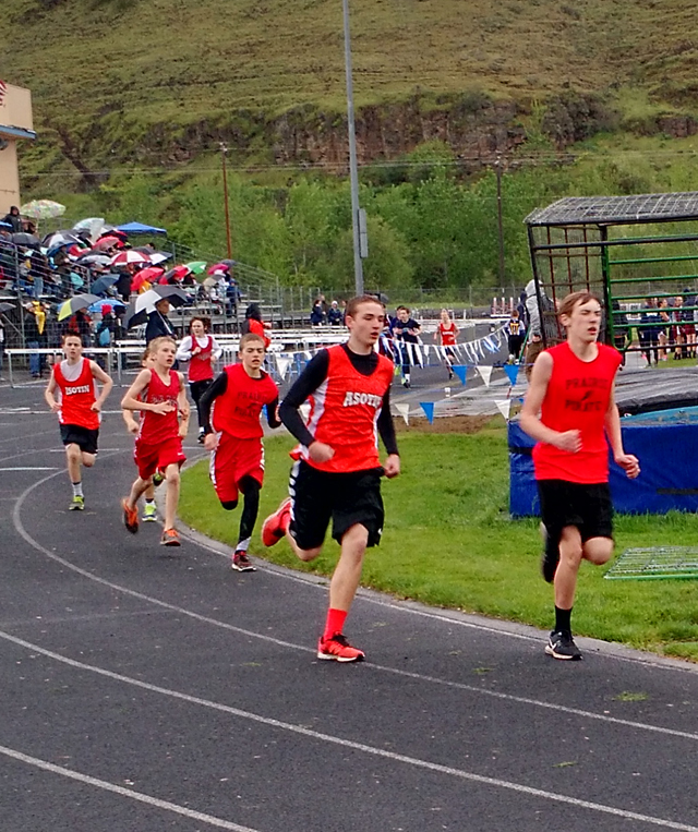 Justin Lockett, right, and Zach Rambo, to the left of the Asotin runner, in the 1600 run Monday night in the rain. Photo by Glenn Poxleitner. 2017 Prairie Track Schedule APRIL 12-13-District 1 & 2 Regional Championships, Kootenai High School, Harrison, ID 19-20-1A State Championships, Middleton High School |