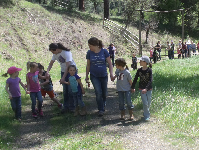 Summit Academy students participated in their annual Hike-a-thon and all school picnic on Wednesday May 10th. Students met at Castle Creek Campground on the north fork of the Clearwater for a potluck before hitting the trail. Younger students walked a wide path along Castle Creek, while the older students set out up a trail full of switchbacks to a nearby summit. Everyone enjoyed and appreciated the sunny day, a rare treat this spring. Hikers enjoyed s'mores after returning to camp. The students thank all those that sponsored them for their hike! Pictured: Preschool through first grade girls pair up with their hiking buddies with help from their guides: Megan Rehder and Kim Uptmor. Photo provided by Summit Academy. |