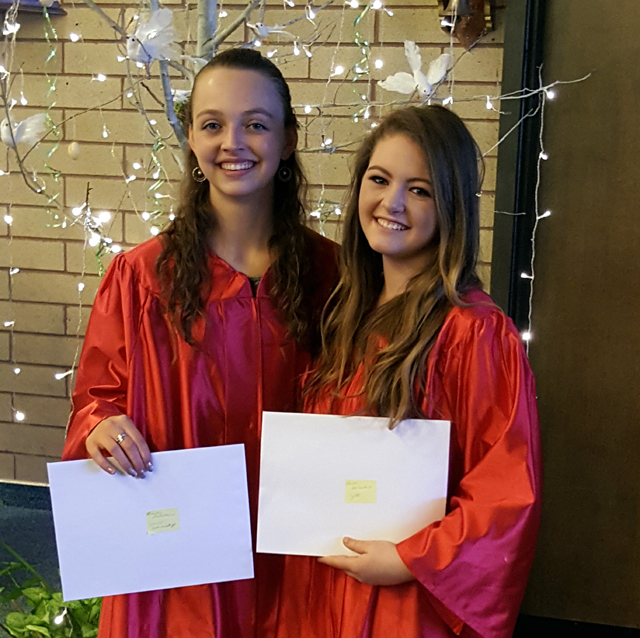 her award from Youth Ministry and Nicole received her award from The Prairie