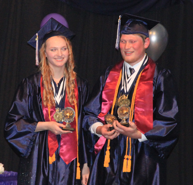 Allycia Sonnen with the Excelsior Award and Chris Osborne with the John Bosco and Patriot Awards.